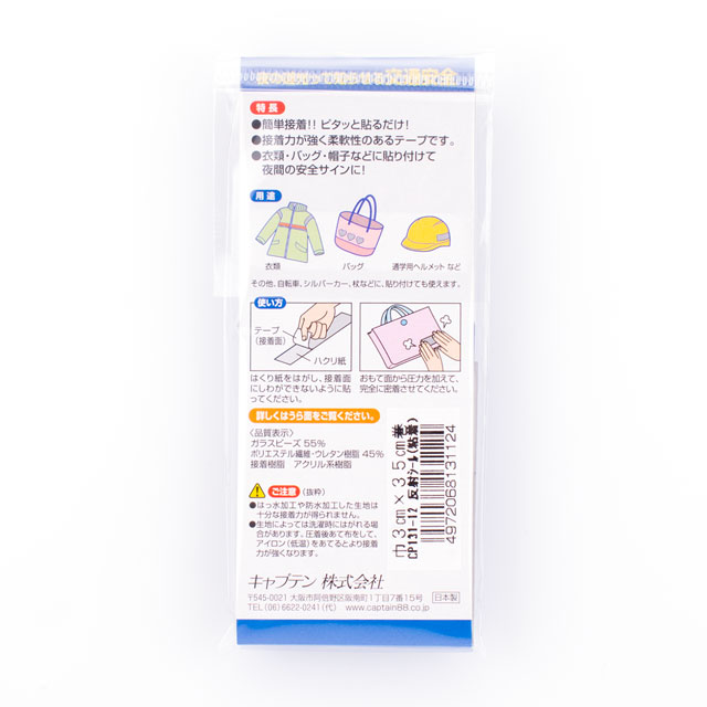 - ●材質:テープ…ガラスビーズ55% ポリエステル繊維/ウレタン樹脂45%、接着樹脂…アクリル系樹脂
