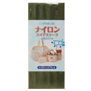 水をはじき、濡れてもすぐ乾く、撥水性のあるナイロン生地を使用したふちどりタイプのバイアステープです。