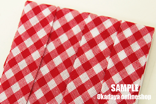 スタンダードカラーが揃ったギンガムチェック柄の両折バイアステープです。