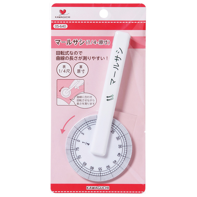 回転式のメジャー。袖ぐり衿ぐりなどの曲線がカンタンに測れます。
