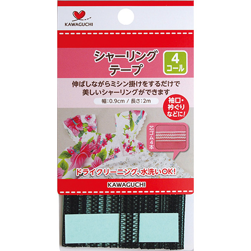 ミシン掛けをするだけで簡単にシャーリングが出来る便利なテープです。