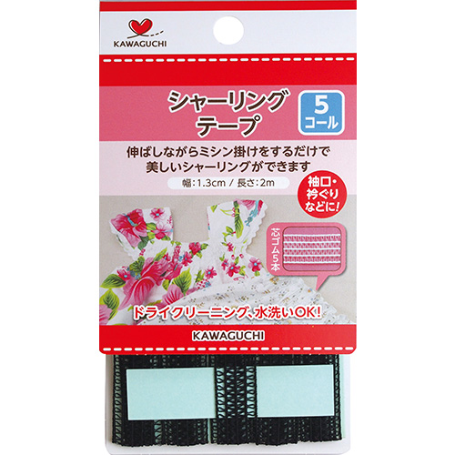 ミシン掛けをするだけで簡単にシャーリングが出来る便利なテープです。