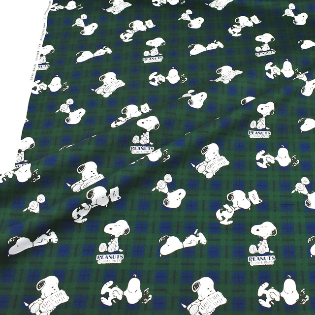 スヌーピー柄の綿オックス生地。