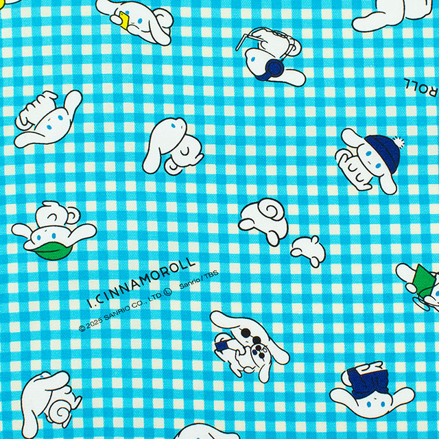 いろいろなポーズのアイシナモロールがかわいらしいギンガムチェック柄です。