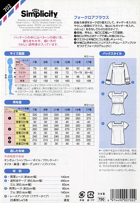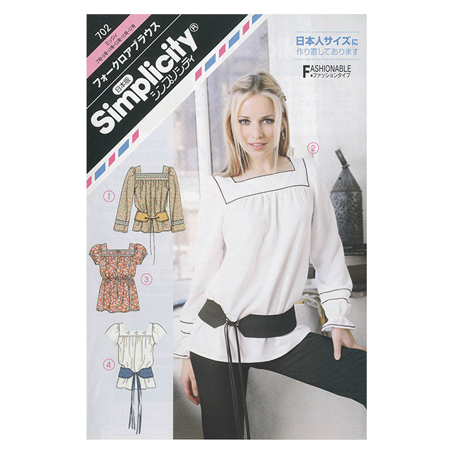 - ●型紙内容:大人(7~17号)用のフォークロアブラウス(※モデル着用ベルトのパターンは付いていません。)