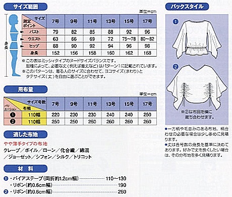 - ●型紙内容:大人(7~17号)用のフレアー袖ブラウス、ポンチョブラウス