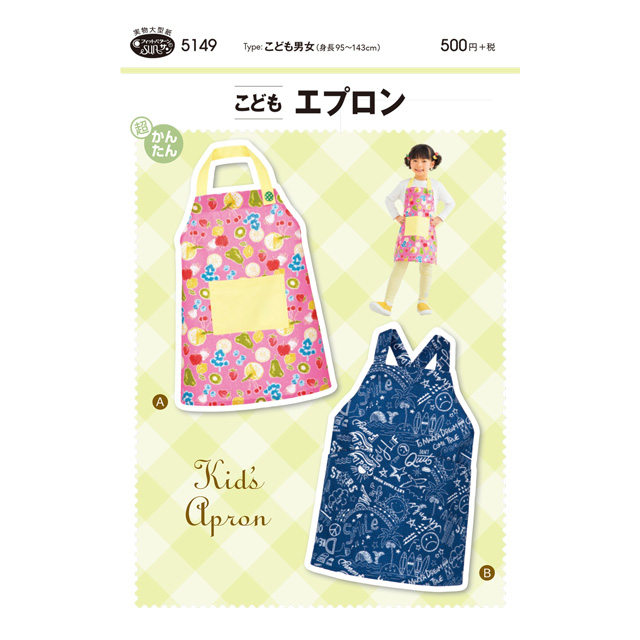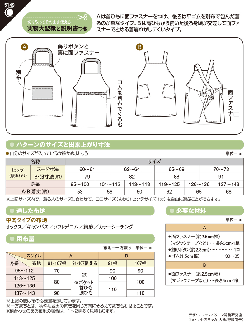 Aデザインは首ひもに面ファスナーをつけ、後ろは平ゴムを別布でくるんだ、小さなお子様がひとりで着られるタイプ。