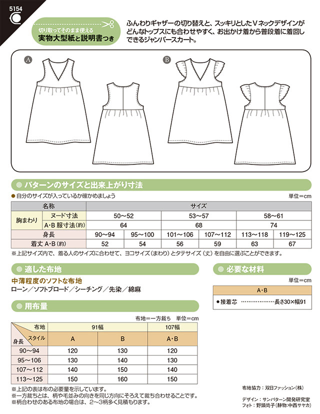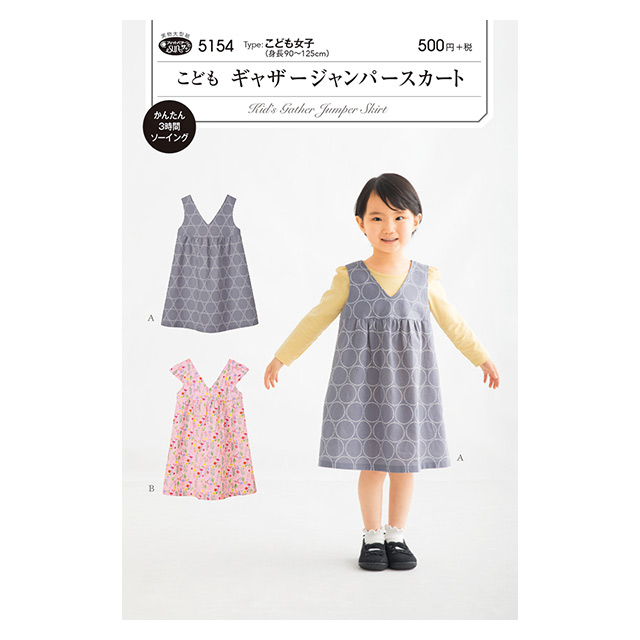 - ●型紙内容:こども(身長90cm~125cm)用のギャザージャンパースカート
