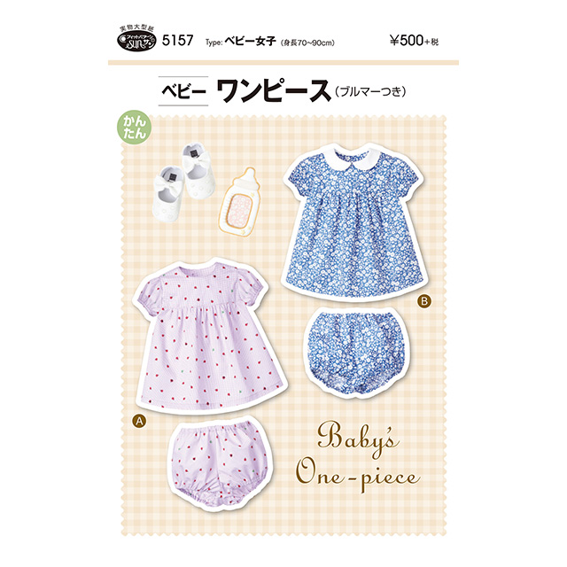 - ●型紙内容:ベビー(身長70cm~90cm)用のワンピース、ブルマー