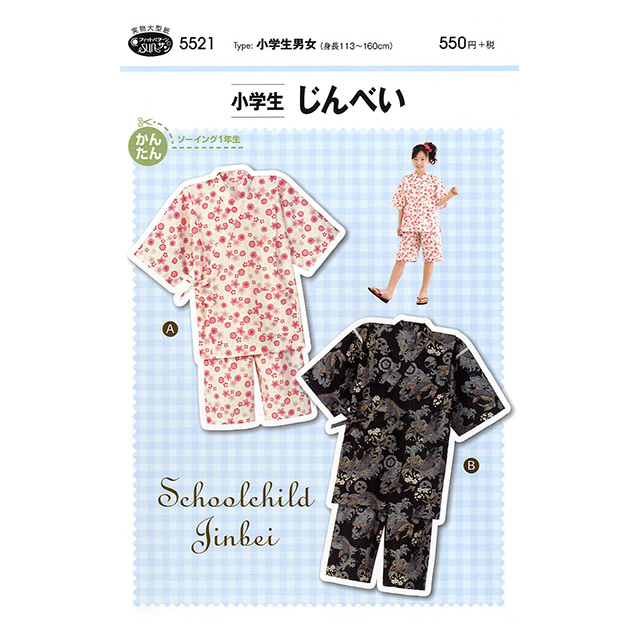 小学生程度のお子様(身長113cm~160cm)用のじんべいが作れるソーイング用の実物大型紙です。
