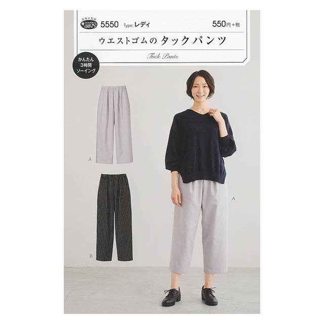 - ●型紙内容:大人用のウエストゴムのタックパンツ(対応サイズは画像をご確認ください。)