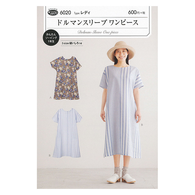 - ●型紙内容:大人用のドルマンスリーブワンピース(対応サイズは画像をご確認ください。)