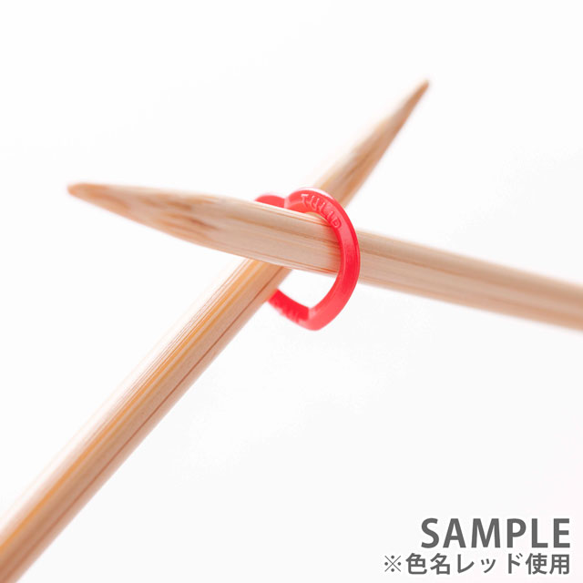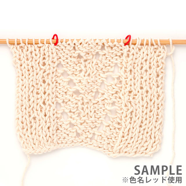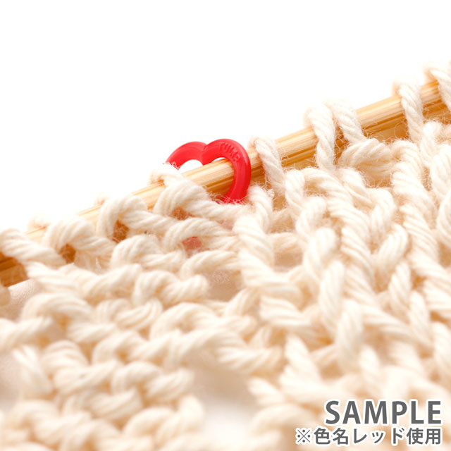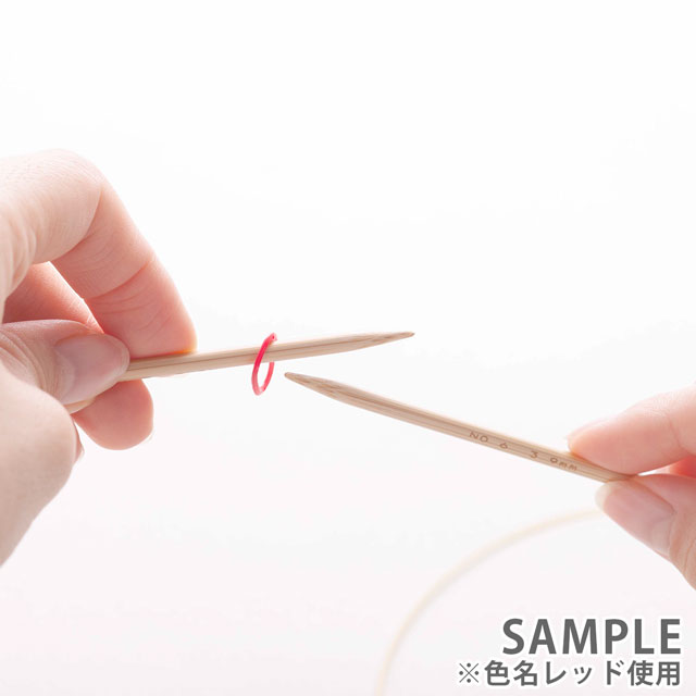 輪針編みの際には、編み始めの目の横に通しておくと、段の数がかぞえやすくなります。