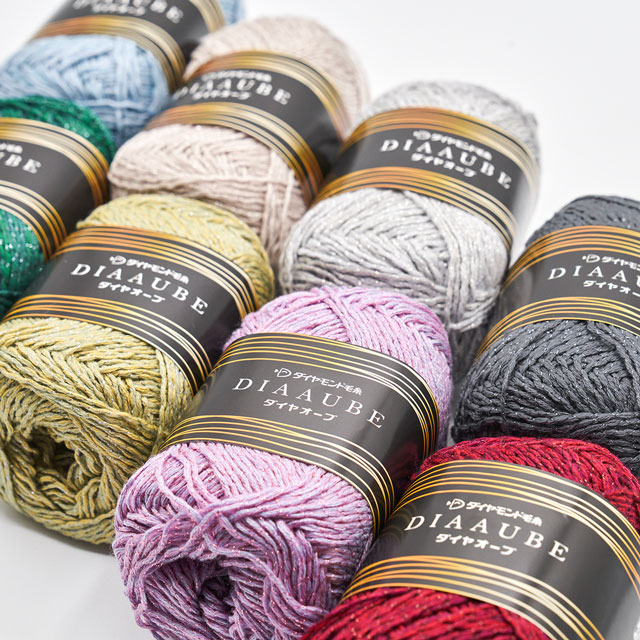 繊細な編み目の中にラメが輝く、エレガントな印象の編み糸です。