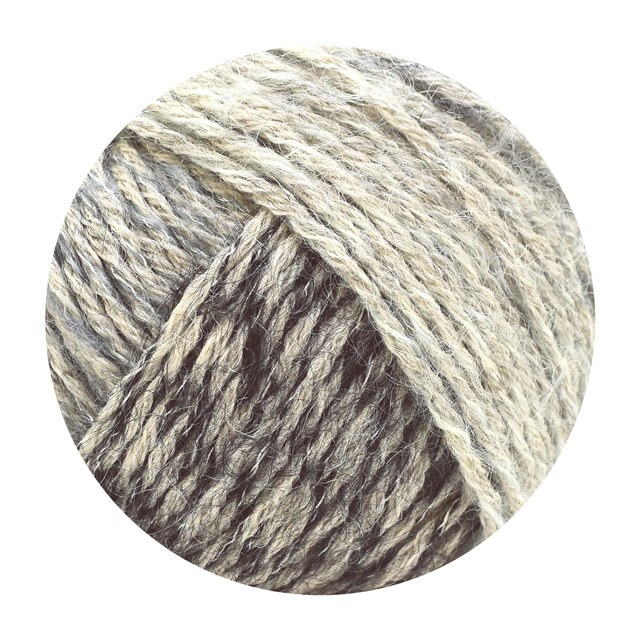 アルパカ・ウール混の芯糸にロングピッチプリントのモヘアを撚糸。