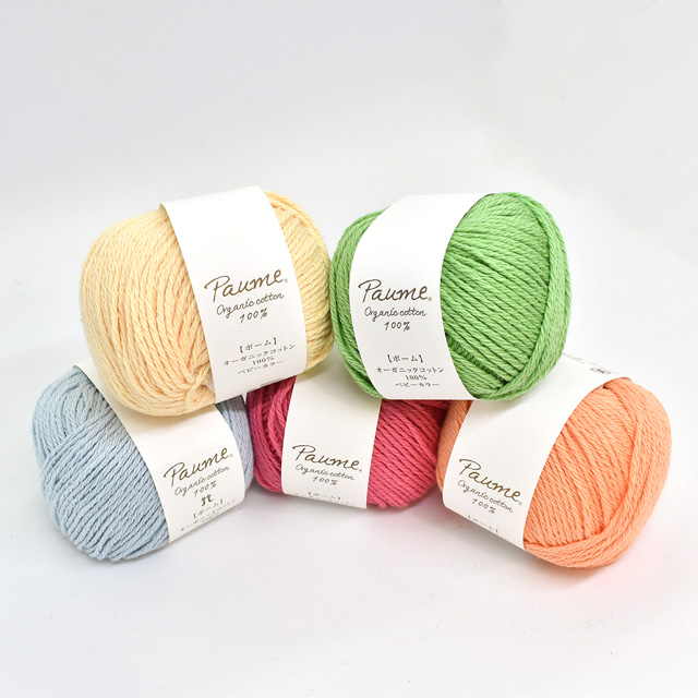 無垢綿ベビーに直接染料を用い、やさしいペールトーンカラーに仕上げたオーガニックコットンストレートヤーンです。