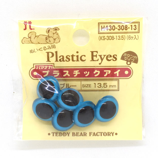 ハマナカ ぬいぐるみ用 プラスチックアイ ボタン穴タイプ 13.5mm(H430-308-13) ブルー 06Bm99_