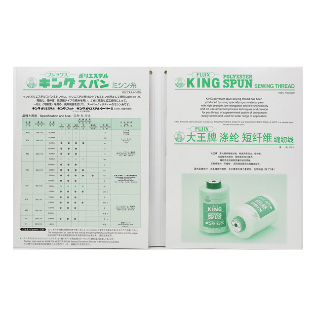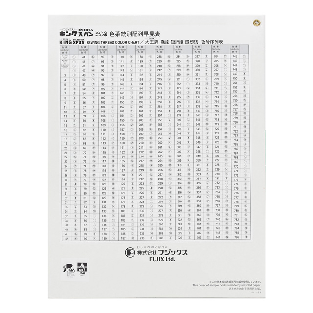 フジックスのキングスパン工業用ミシン糸の色見本帳です。