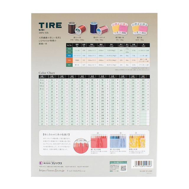 フジックスのタイヤー絹糸(絹ミシン糸、絹カラーステッチ、絹手縫い糸、絹穴糸)の色見本帳です。