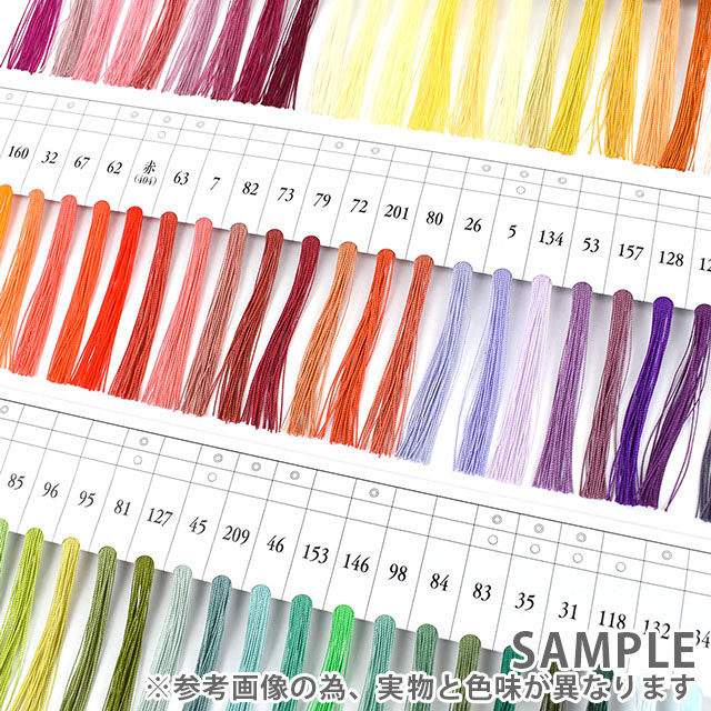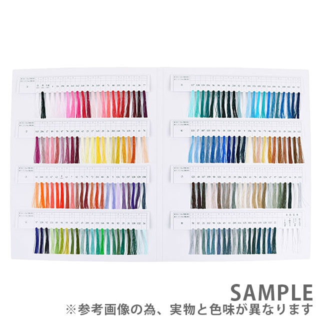 実物の糸束がついた見本帳なので、お手持ちの布地に合わせて糸を選ぶ際に役立ちます。