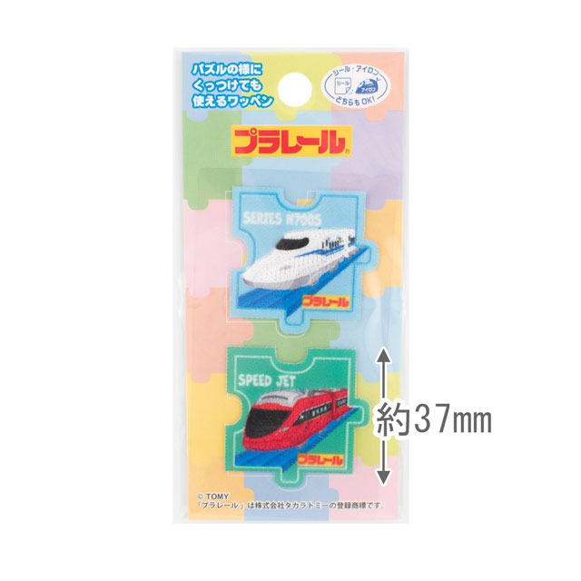 パズルの様にくっつけても使える、プラレールの2個付きワッペンです。