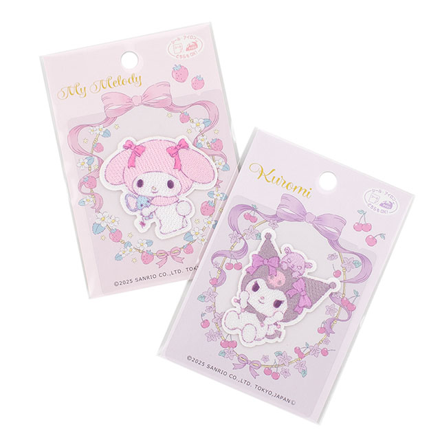マイメロディとおともだちのぬいぐるみがかわいいワッペンです。