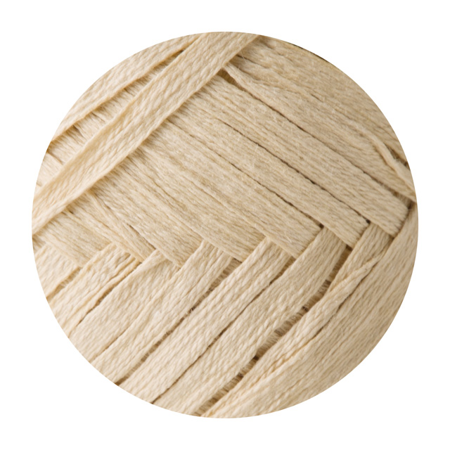 テープ状になった糸の幅と硬さにもこだわり、軽くてしっかりとしたバッグや小物ができます。