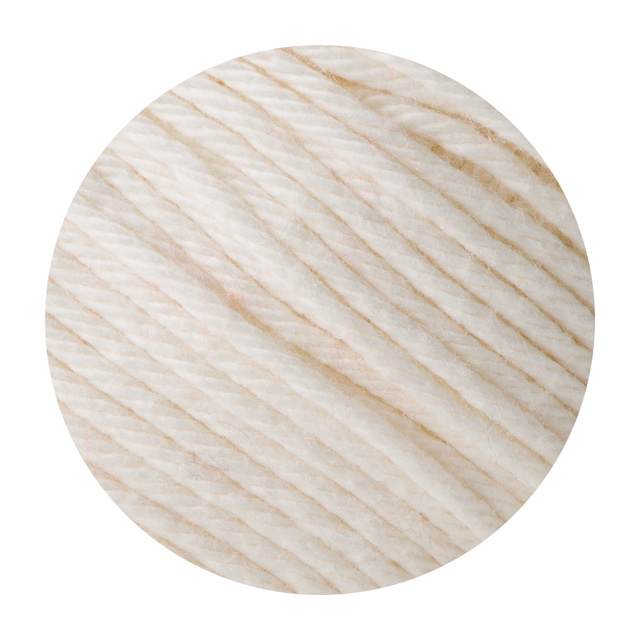 太さは並太で、糸の撚りが甘く弾力があるのが特徴で、素材の表情がより引き立ちます。