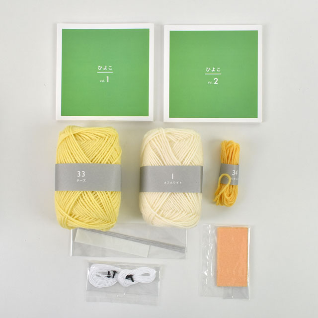 ぽんぽんを作る毛糸や羊毛、さし目などの材料とわかりやすいテキストが入っているので、