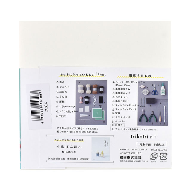毛糸を巻いて作る動物ぽんぽんのtrikotriさん監修のキットです。