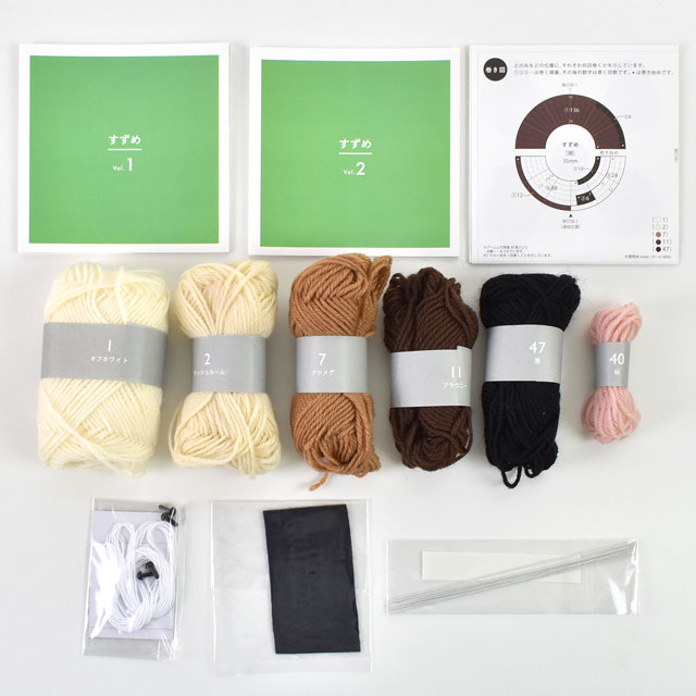ぽんぽんを作る毛糸や羊毛、さし目などの材料とわかりやすいテキストが入っているので、