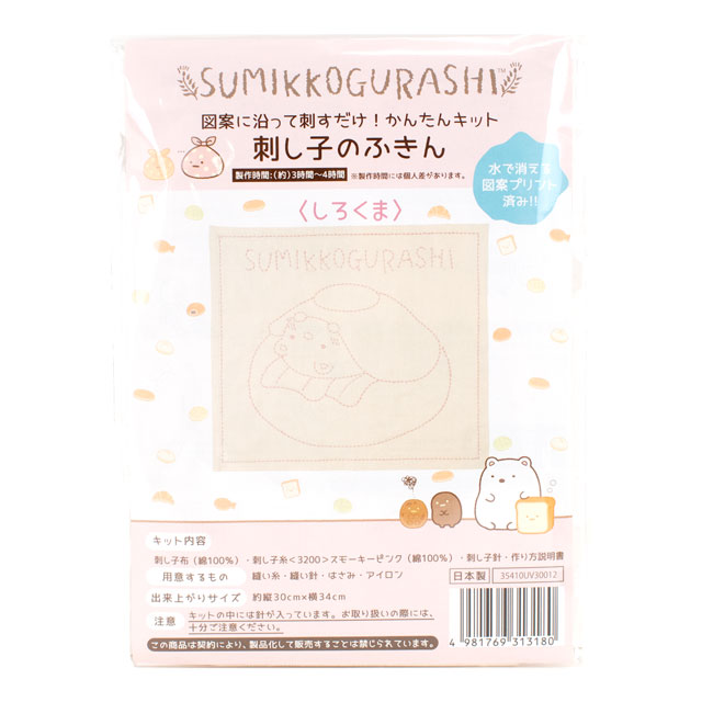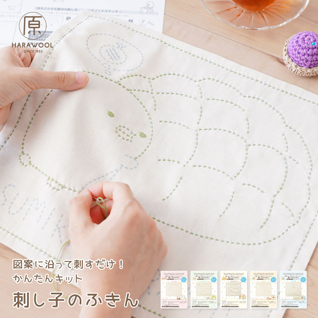 お子様にはもちろん、大人にもファンの多いすみっコぐらしのキャラクターがデザインされた刺し子キットです。