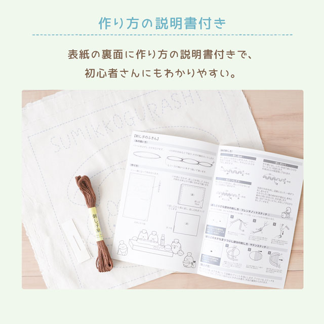 刺し子糸・刺し子針・作り方説明書もセットに入っているので、初心者の方でも気軽に始められます。