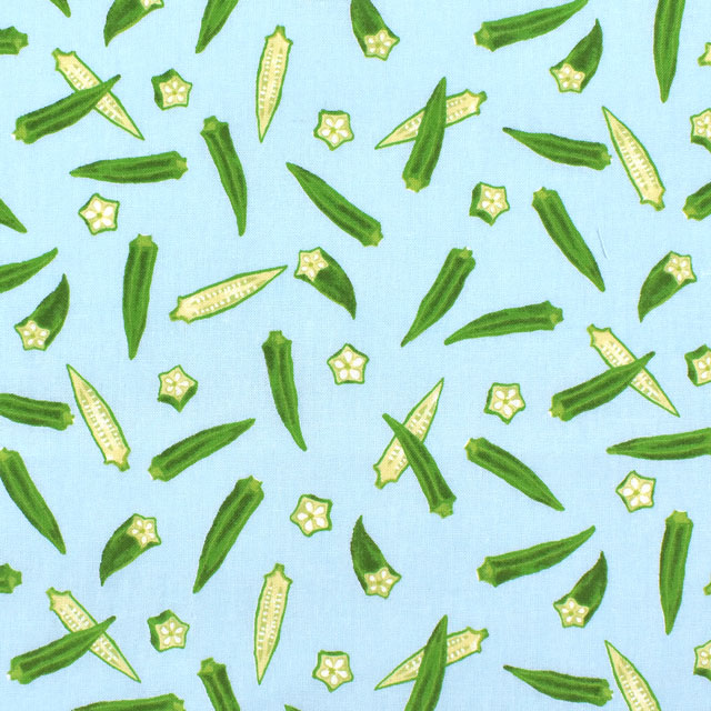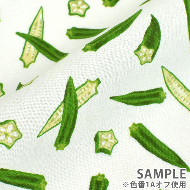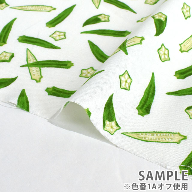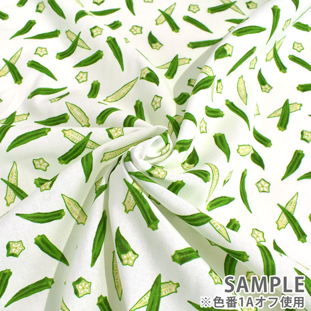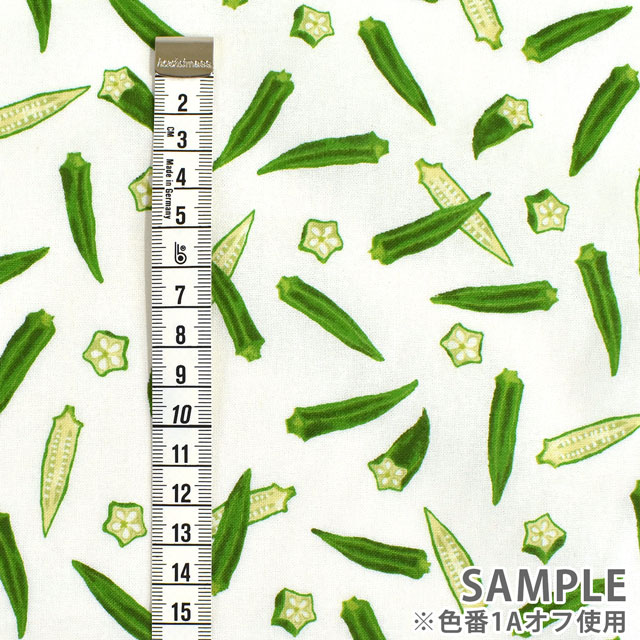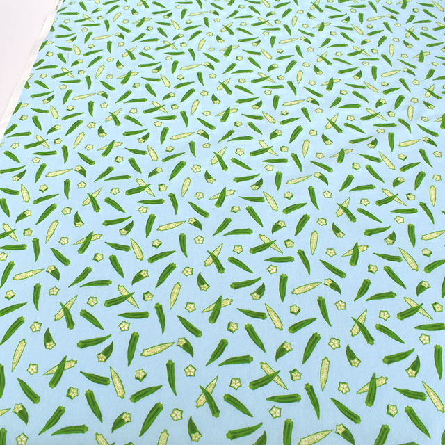 オクラが散りばめられたシーチングプリントです。