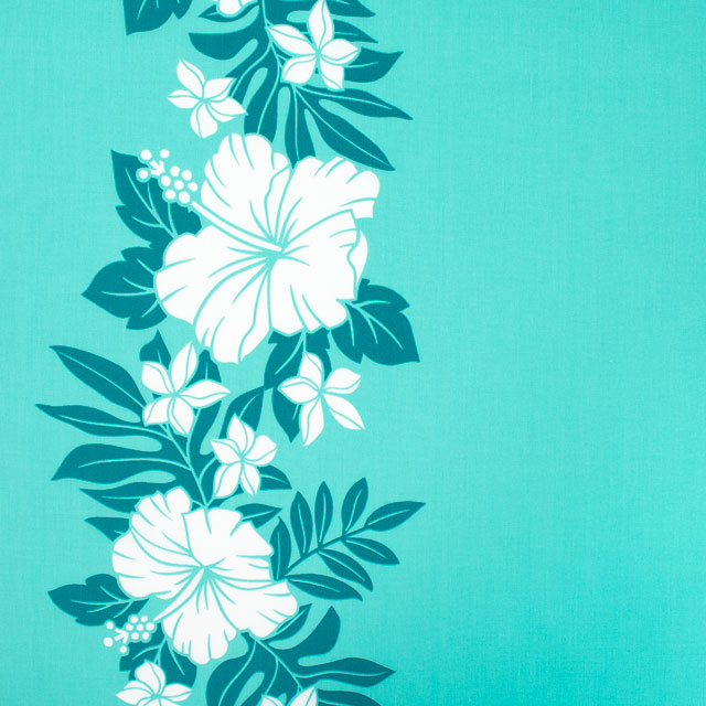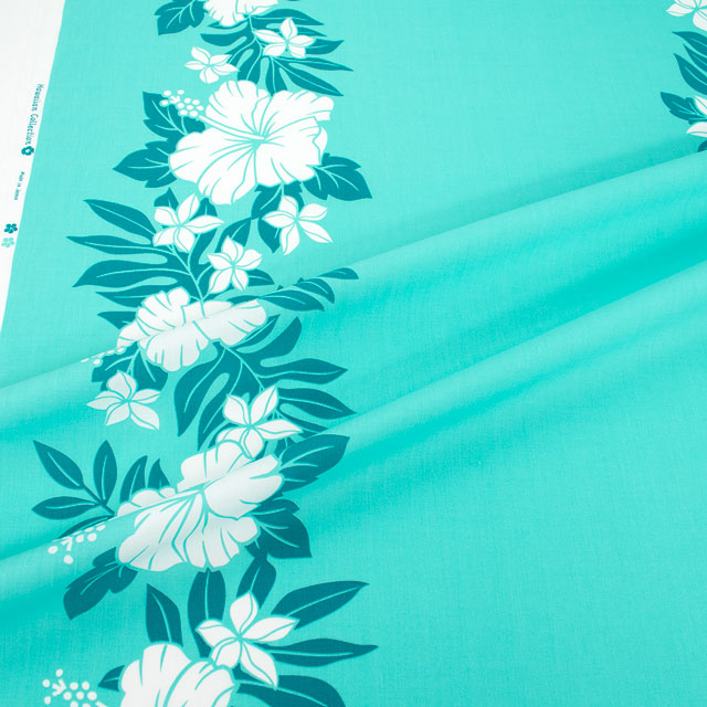 3列の大きな柄が目を引く、ハワイアンの人気モチーフがデザインされた生地です。
