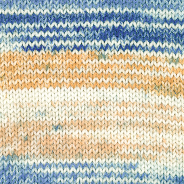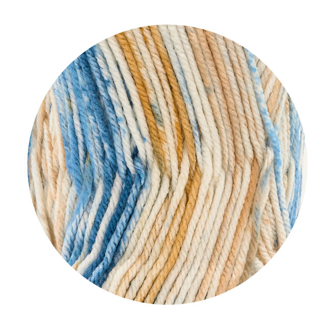 極太タイプのプリントヤーンがもたらす自然なグラデーションは、作品に深みと動きを加え、単色では表現できない奥行きを演出します。