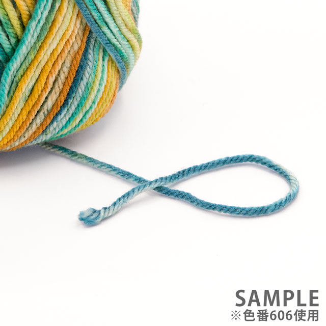 ザクザクとテンポよく進む編み心地と、アクリル100%とは思えない柔らかさで、ウェアから雑貨まで幅広くお使いいただけます。
