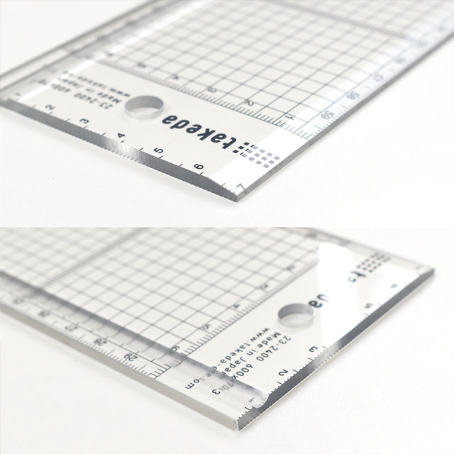 目盛りが読みやすく、線引き作業を考慮した緩やかなテーバー加工です。