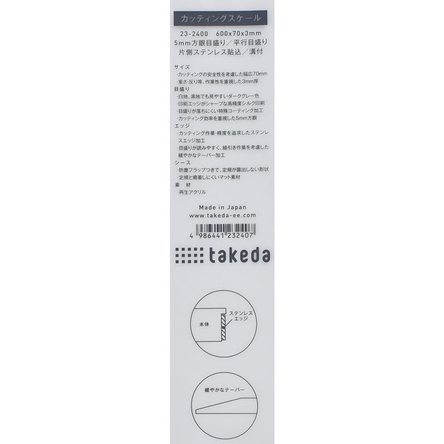 安全性を考慮した広幅(70mm)のカッティング定規です。