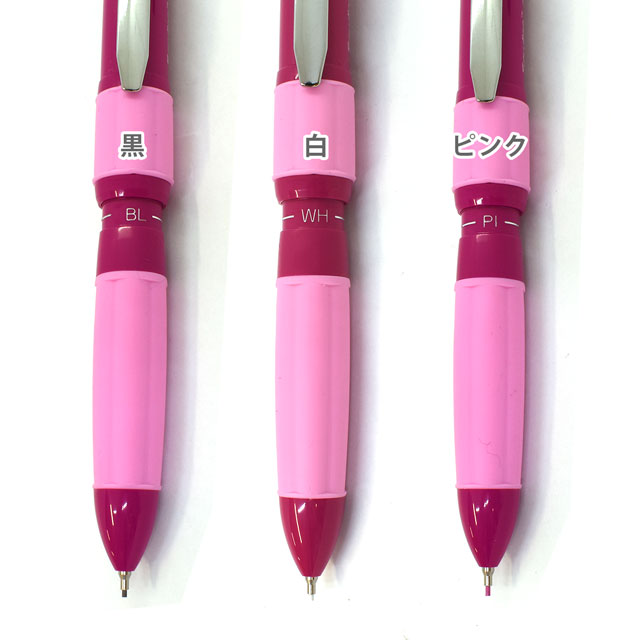 黒は淡色の生地・白は濃色の生地・ピンクはどちらにも適しています。