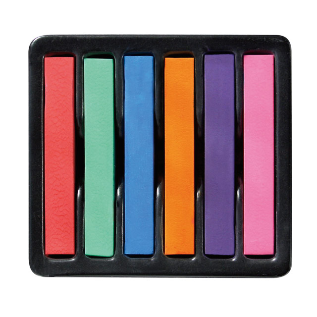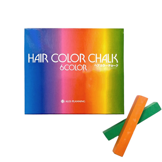 - ●セット内容:ヘアカラーチョーク6色(赤・緑・水色・オレンジ・紫・ピンク)×各1本、ビニール手袋1組