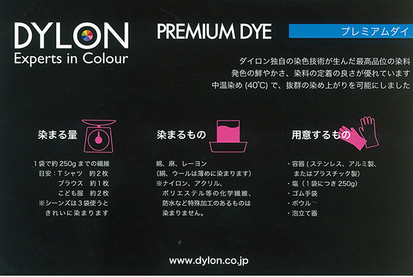発色が良く、色落ちが少ないDYLON/ダイロンの繊維用染料。