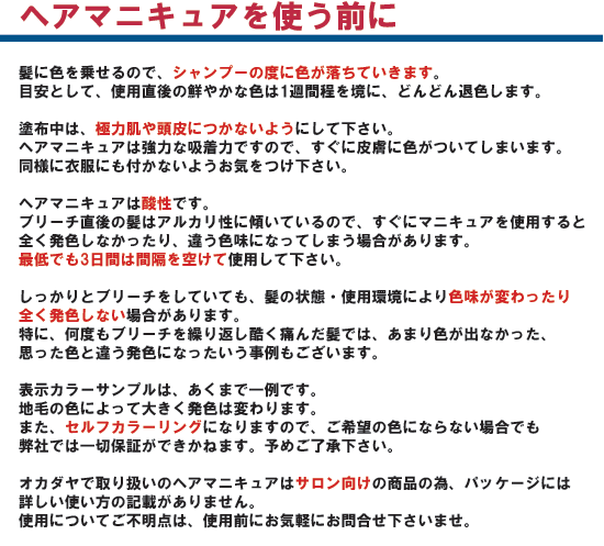 また、周囲への色移りを防ぐために髪をよく乾かしてください。