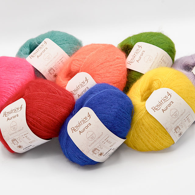 暖かく、薄くて軽い作品を編むのにぴったりなモヘアとシルクの混紡糸。