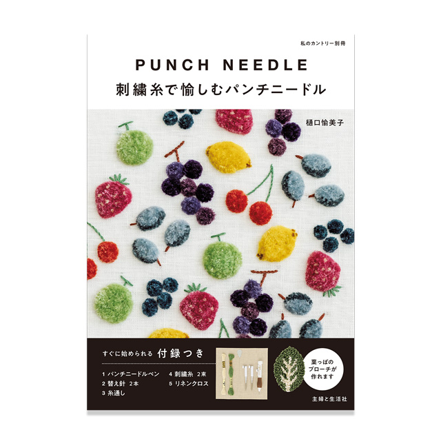 書籍にはパンチニードルペンのセットの他、はっぱのブローチを作るための布と糸が入っています。