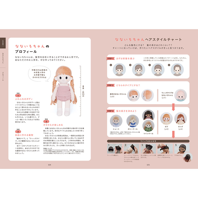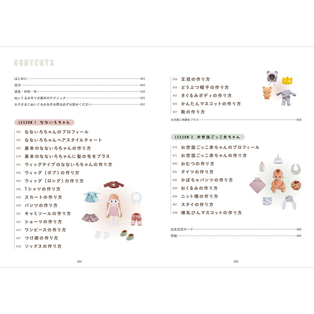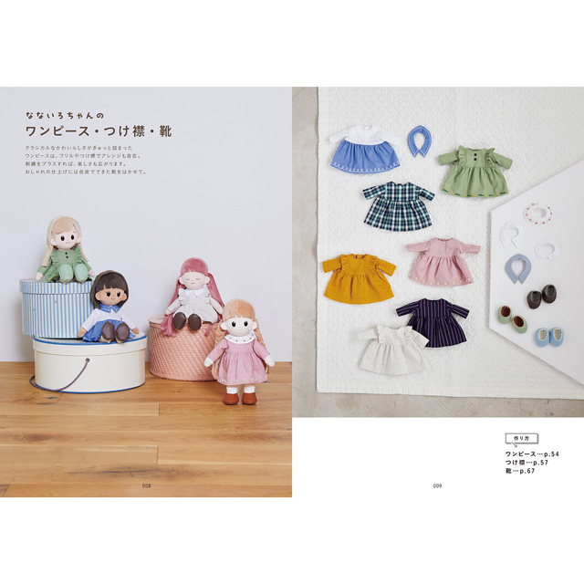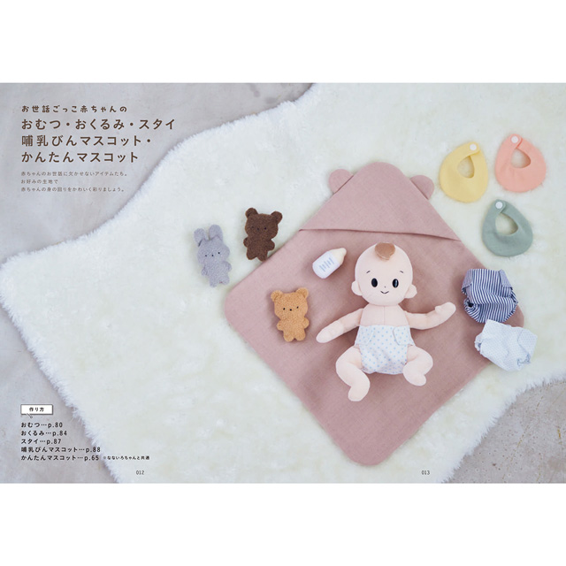 なないろちゃん、赤ちゃんには、それぞれお洋服・小物の作り方が掲載されています。