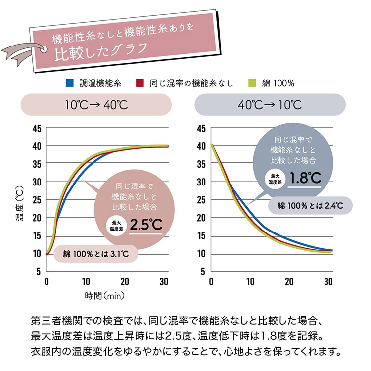 1.衣服内の温度変化を ゆるやかにする温度調節機能