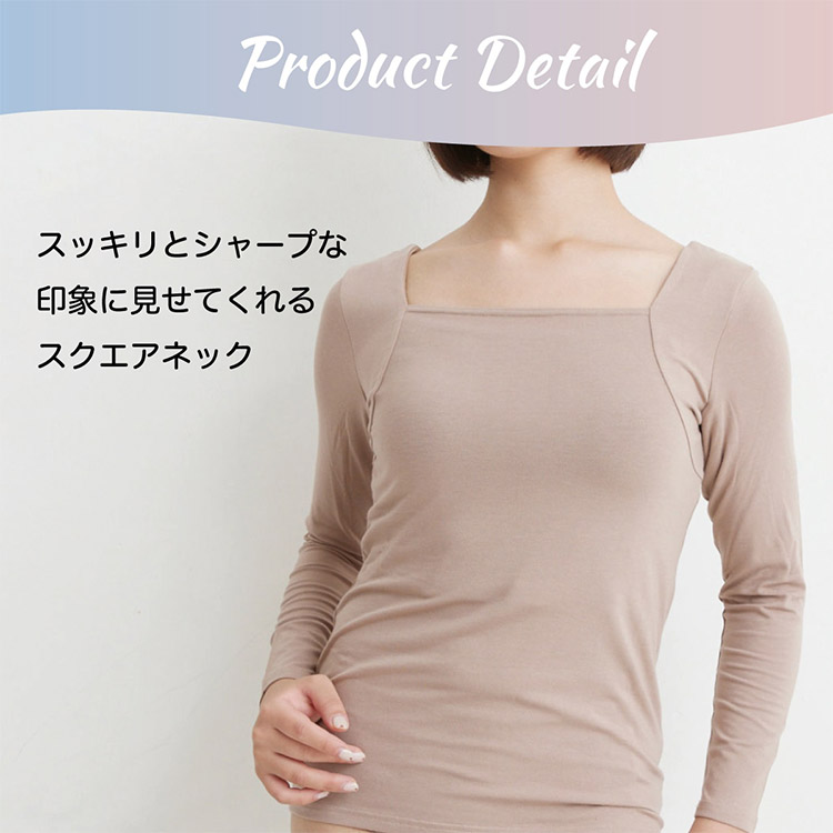 デコルテをきれいに見せるスクエアネックの8分袖インナー。
