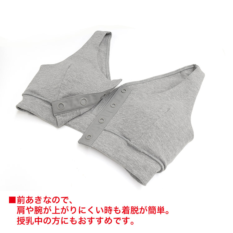 肩や腕が上がりにくい方や、授乳中の方も楽ちんに着用できるのが特徴です。