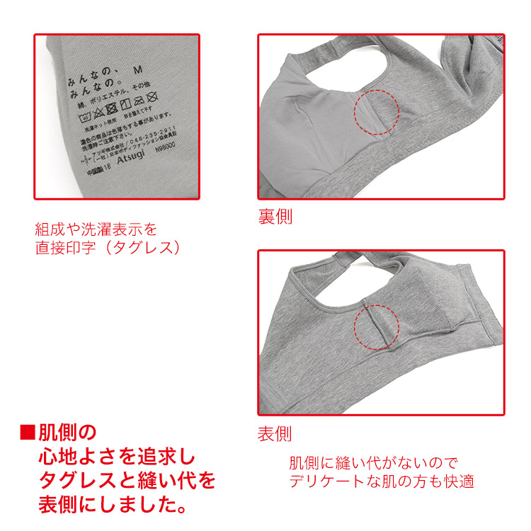 ●肌側の心地よさを追求し、縫い代は極力肌にあたらない仕様
